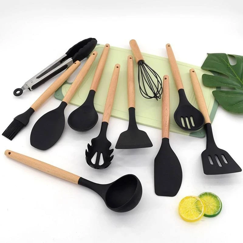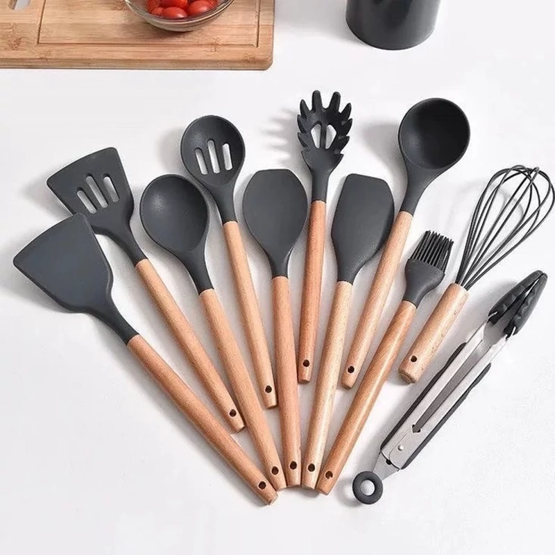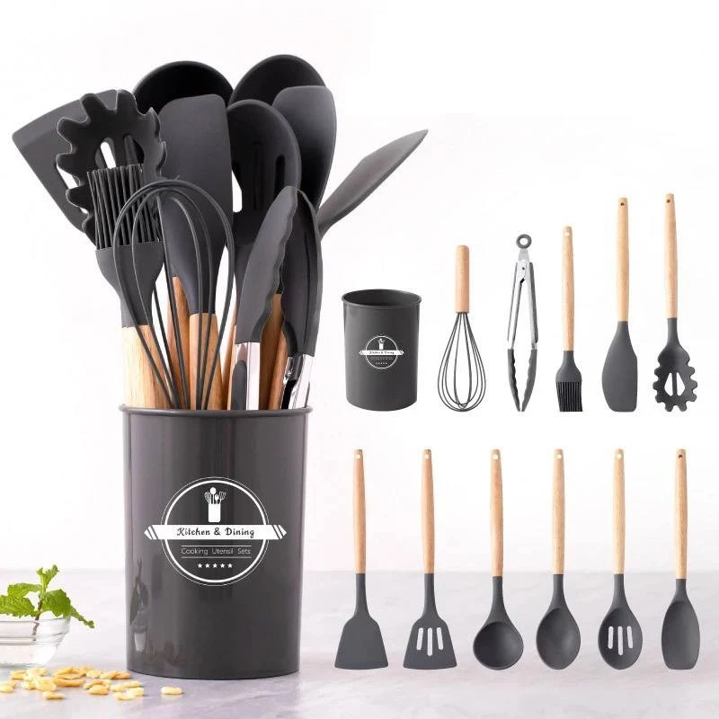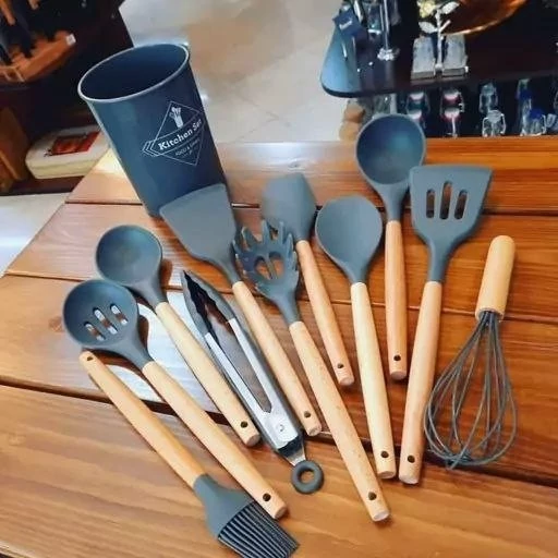 ست کفگیر و ملاقه سیلیکونی 12 پارچه Kitchen & dining مدل دسته چوبی Original