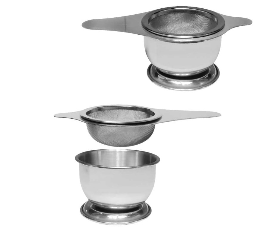 این مجموعه از دو بخش تشکیل شده است: صافی استیل و پایه مخصوص برای قرار دادن صافی پس از مصرف. این طراحی از آلوده شدن سطوح به رطوبت و قطرات چای جلوگیری میکند.