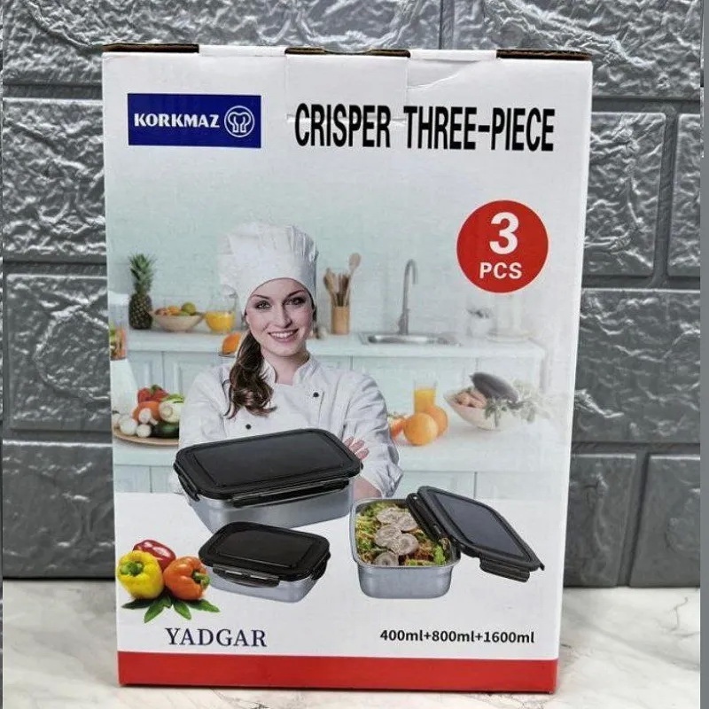 ظرف نگهدارنده استیل KORKMAZ مدل Crisper مجموعه متوسط 3 عددی